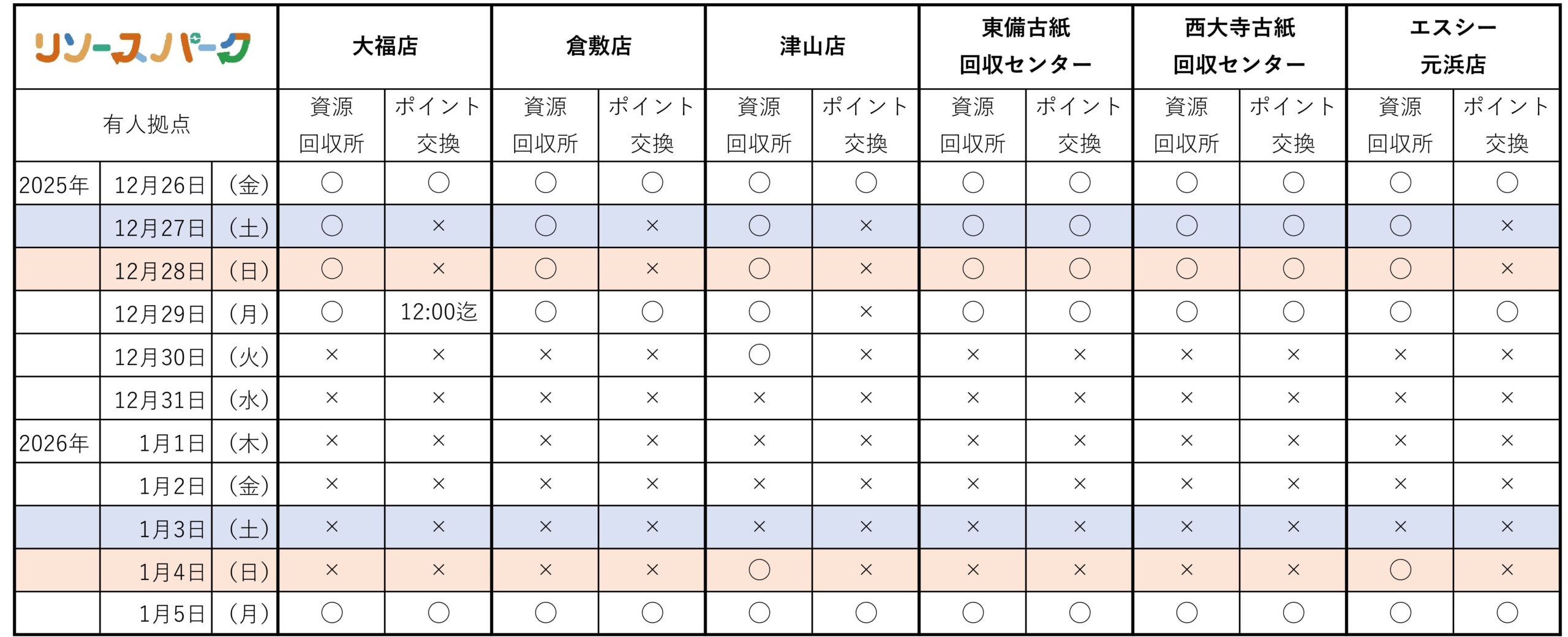 休業期間:2025年12月30日(火)~2026年1月4日(日)